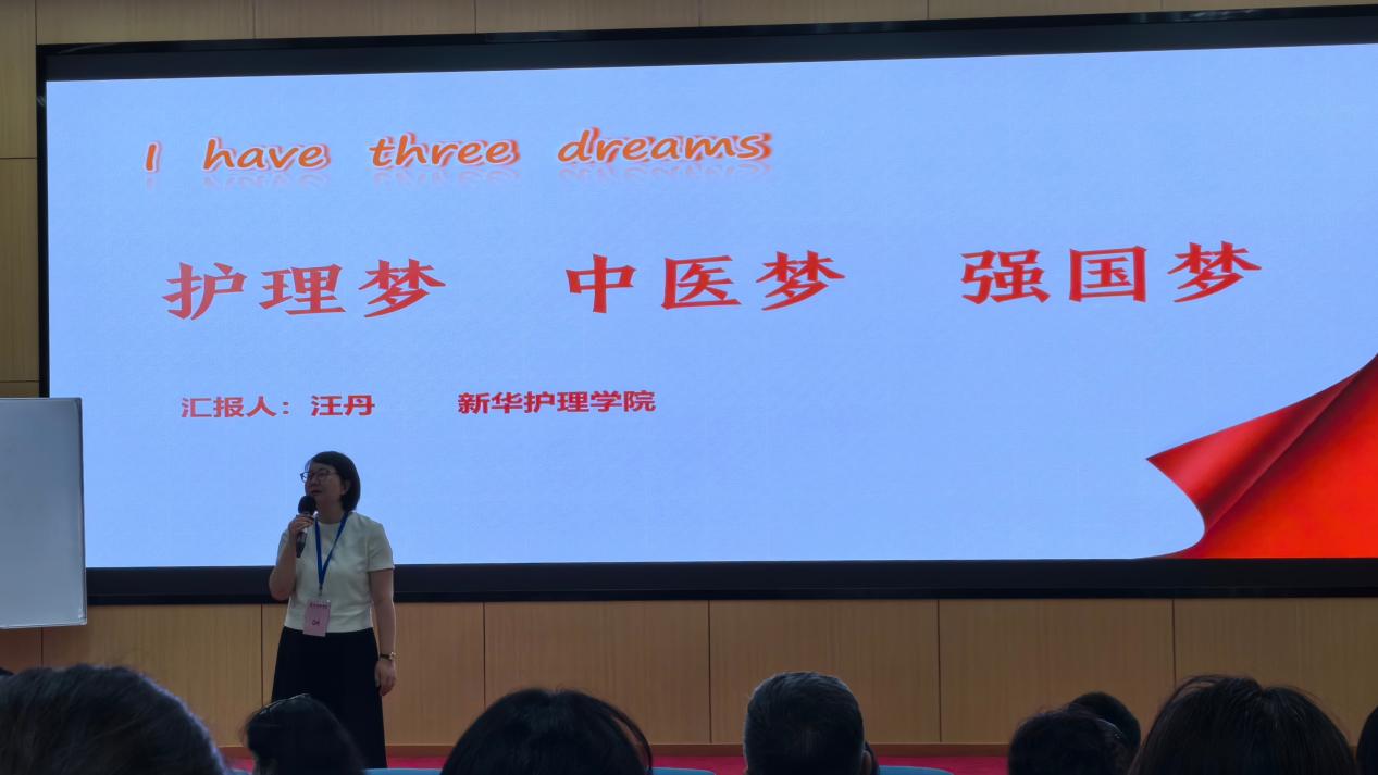 汪丹老师在主题演讲中,以“护理梦,中医梦,强国梦”为题,展现了护理人的人文关怀和对传统文化的热爱,深深打动了在场的教师。