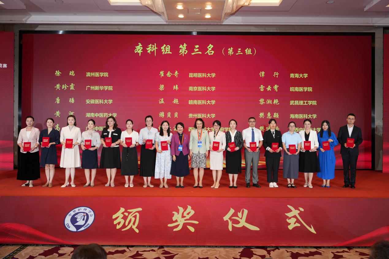 2024年9月20日,由中华护理学会主办的第三届全国高等护理教育院校青年教师授课竞赛在福建厦门顺利进行。赛事竞争激烈,经由各省、直辖市选拔推送,最终全国共106所本科院校的106位青年教师共襄盛举,同台竞技。我院教师黄珍霞作为广东省高校代表教师之一,在课程教学中将课程思政融入课堂教学,最终荣获本科组第三名。