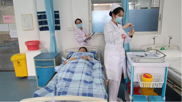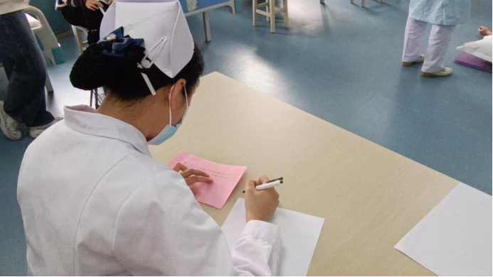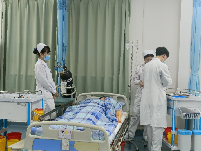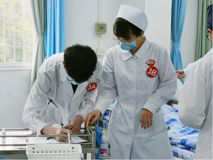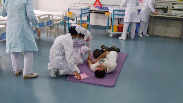 在本次比赛中,选手们精神抖擞、有条不紊地进行各项操作,展现了护理人员出色的应急能力、批判性思维、人文关怀及心理素质。评委老师们细心严谨、认真负责地观察同学们的每一个细节,进行严格、公平、公正的评分。比赛过程严谨有序,气氛紧张热烈。