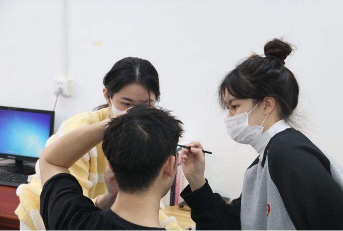 工作人员为模拟病人化妆