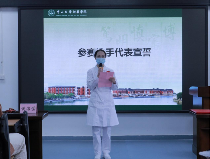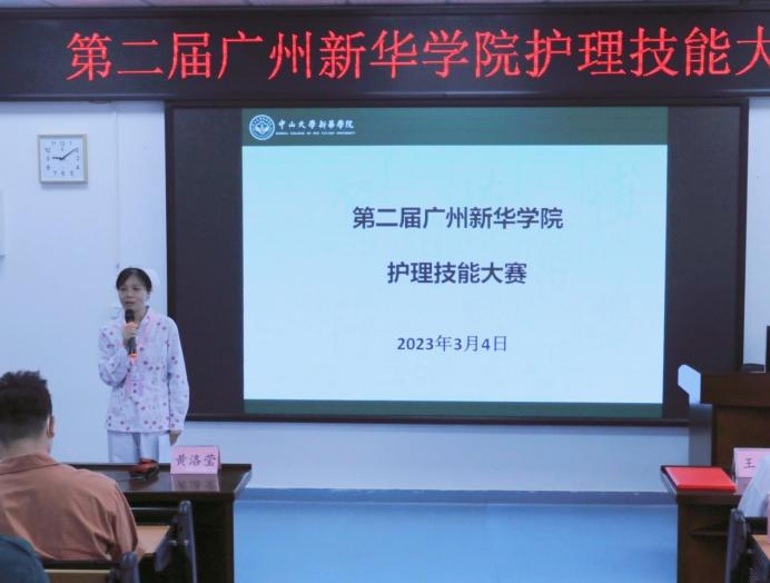 比赛开始前,全体人员参加赛前宣讲。赛前宣讲会由黄洛莹副院长主持。首先,由王秀岚院长生动有力的致辞为比赛拉开帷幕。王院长向同学们讲述了护士在临床上需注意的事项,强调了批判性思维对护士临床工作的重要性,寄语同学们要加强培养自己的批判性思维。王秀岚院长表示,期待同学们在今天的比赛中有精彩的表现。