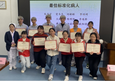 黄廷芬主任(左一)为最佳标准化病人获得者颁奖
