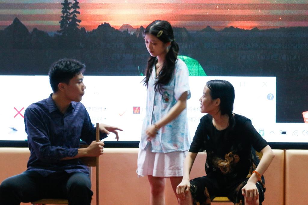 节目进行过程中,由于天公不作美,突如其来的暴雨打乱了演出的计划,这一场大雨使我们的晚会不得不暂停。为使晚会能够继续举行,我们将舞台转至教学楼D101。暴雨浇不灭表演者们似火的热情,即使在条件受限的教室里,表演者们仍然为我们呈现了别样的精彩表演。