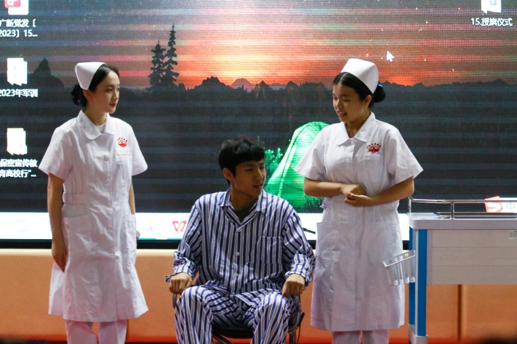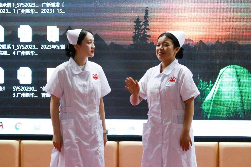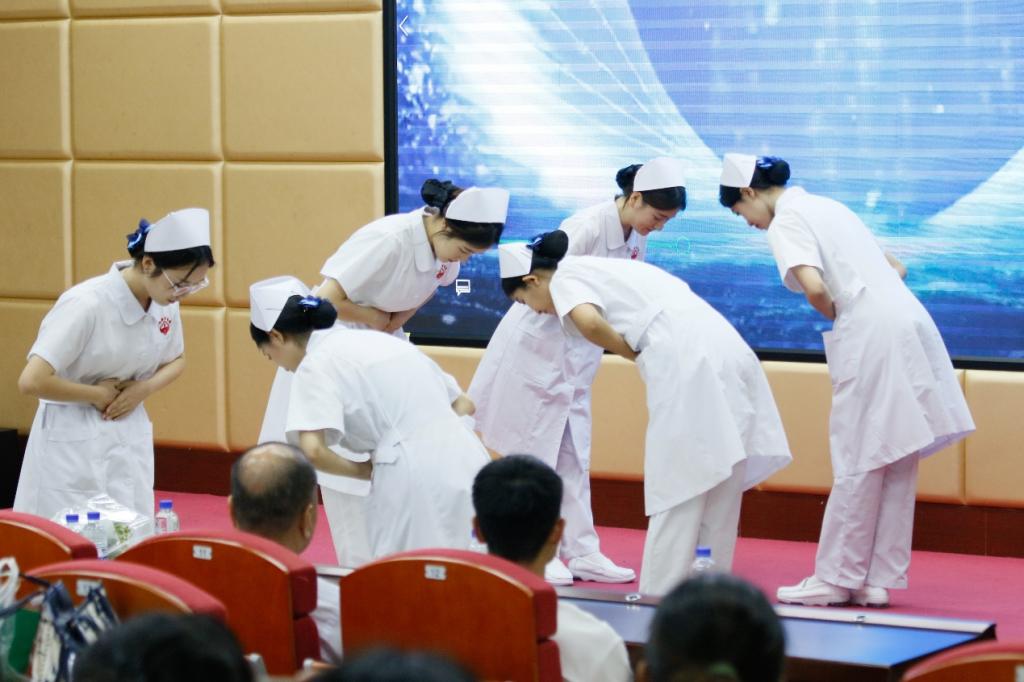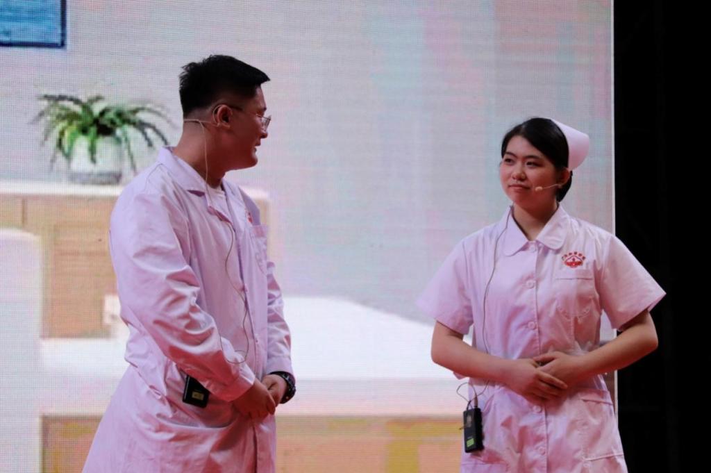 我们不是演员,但我们要在人生的舞台上展示最优美的白衣神韵;我们不是模特,但我们要穿出我们心中最美的时装。在护理工作中,我们也有专属的护理礼仪,护士们总是面带微笑,身穿洁白的护士服,护理学生们带来的表演节目《护理礼仪》为我们展现了护士们步履款款、落落大方的优美仪态。