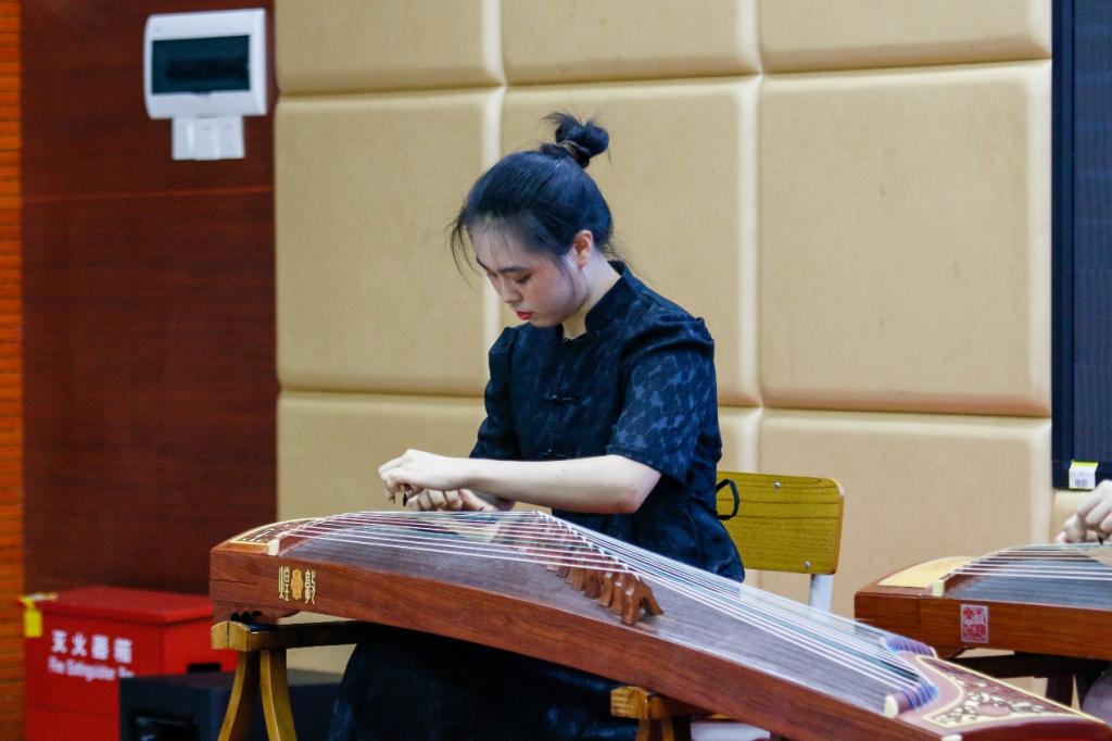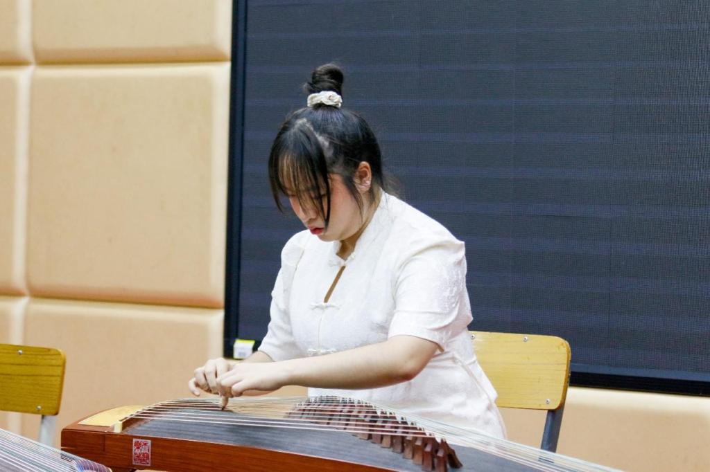 接着由器乐队为我们带来古筝弹奏战台风》。细丝般的筝弦,蕴含着无穷的力量。琴声时而优美动听,像小溪那泉水叮咚;时而宁静悠远,好似那山谷的幽兰。它有一份独特的气概,好像一位英雄豪杰。