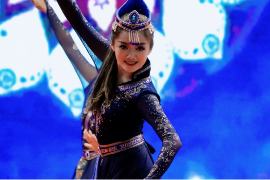 音乐奏响,洒脱柔美、豪迈大气的舞蹈风格顿时吸引了观众的眼球。艺术团民舞队的蒙古舞《蓝色的风》用动感的舞蹈身姿展现出青春最明媚的色彩,带领我们领略了大草原的豪放。在她们轻捷洒脱、极具民族特色的舞步中,晚会正式拉开帷幕。