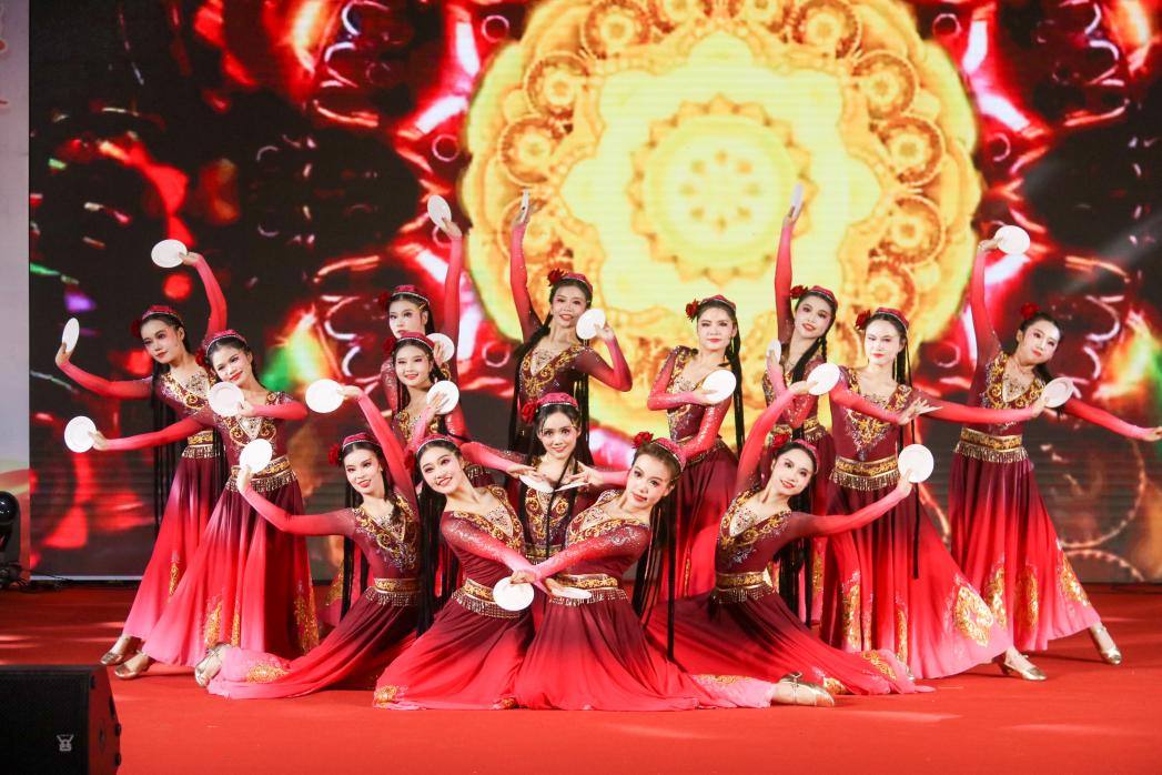 颁奖环节过后,艺术团民舞队为我们带来了维族舞蹈《古扎丽古丽》。表演者们昂首挺胸、背部挺拔的直立感,给观众们展现了在新疆草原上活泼、自信、奔放的感觉。舞蹈音乐活泼欢快,象征着娇艳绽放的花朵,充满朝气、积极向上。