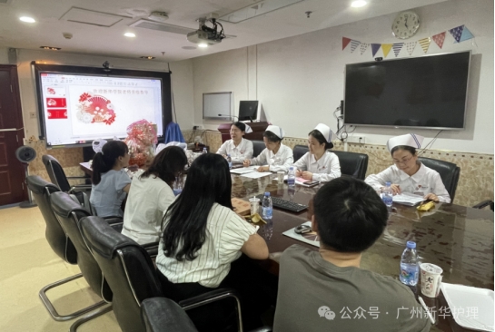 在教师节来临前,为了感谢中山大学附属第一医院(以下简称“中山一院)护理部对我院学生的悉心培养,同时进一步了解实习生的临床表现。2024年9月9日下午,在中山一院肾内科会议室里,中山一院临床护理学教研室唐兰馨、吴绮常、马少娜、罗丹丹四位教师与我院何洁凝、赵小慧、曾美霞三位老师以及实习学生代表杨真真、黄振帮,共同就我院2021级42名实习生近两个月的实习情况进行了深入的交流。