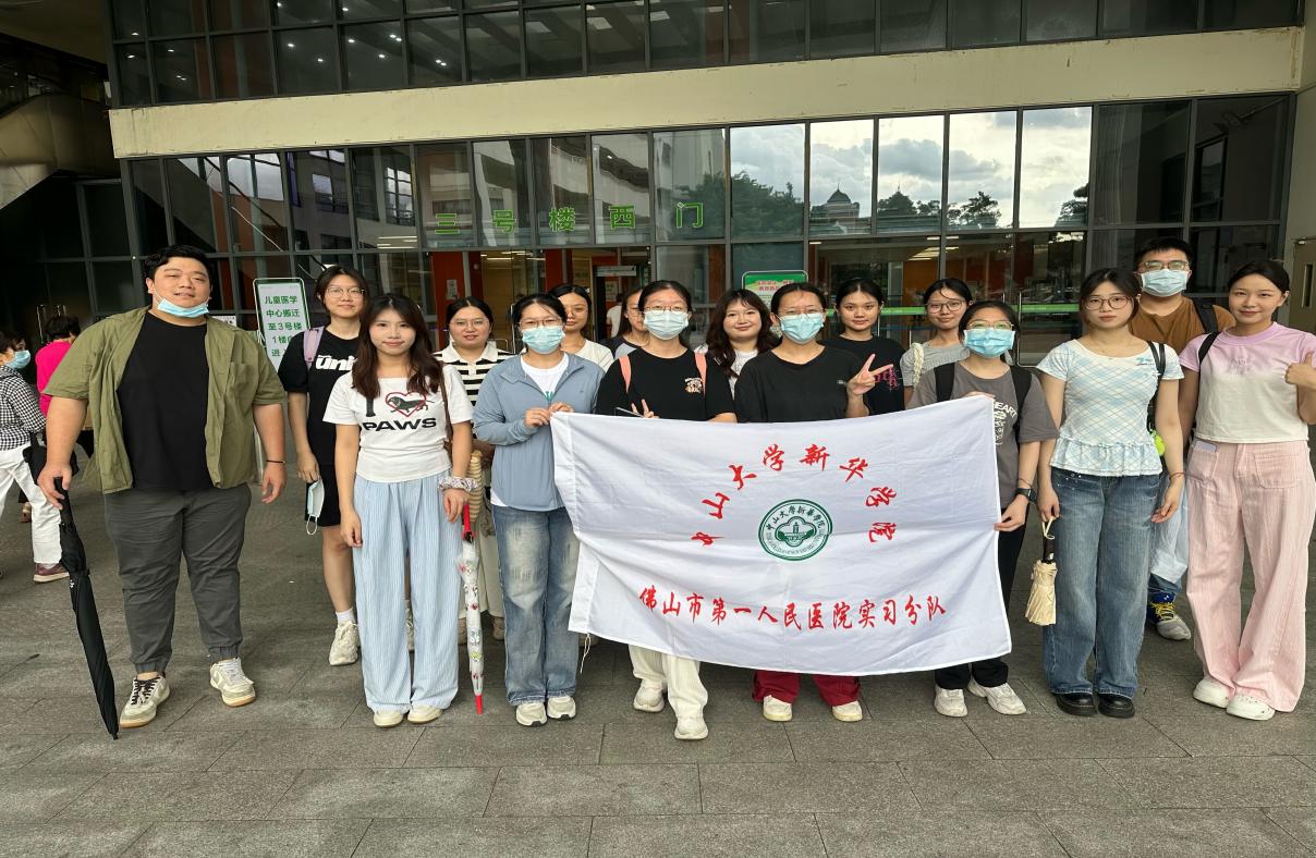 当日 14 时 30 分,同学们满怀期待地在佛山市第一人民医院3号楼集合。带队老师首先为大家细致讲解报到流程和实习注意事项,并在医院门前定格下珍贵的合影,阳光洒在青春洋溢的笑脸上,也照亮了这段充满未知与挑战的新旅程。