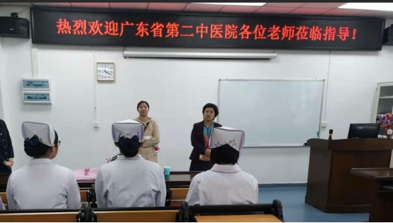 上午9点30分,期待已久的寇主任和陈老师在我院老师的带领下走进了护士站。座谈会上,医院的寇主任和陈老师与我院的于凤兰书记、庄添副书记、办公室主任黄洛莹老师等展开亲切的交谈。双方就我院护理人才的培养模式、毕业生的就业情况等进行了交流,期间寇主任提到广东省第二中医院目前正在扩建,希望今年能来我学院招聘实习生。
