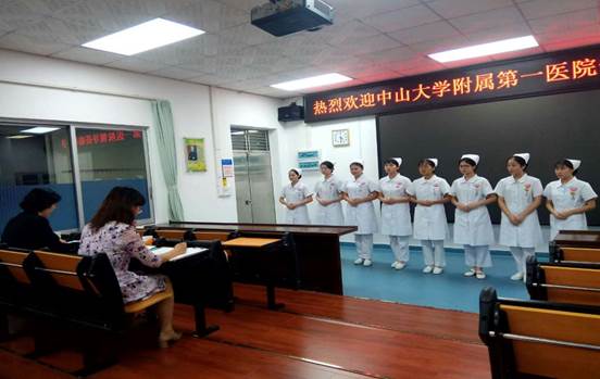 2019年11月11日下午,阳光明媚,微风阵阵,中山大学附属第一医院(以下简称“中大附一”)护理部陈利芬副主任、陈玉英护士长来我校护理学院面试护理实习生,此次面试对象是17级护理学生,参与这次实习招聘面试的同学共有86人。