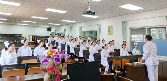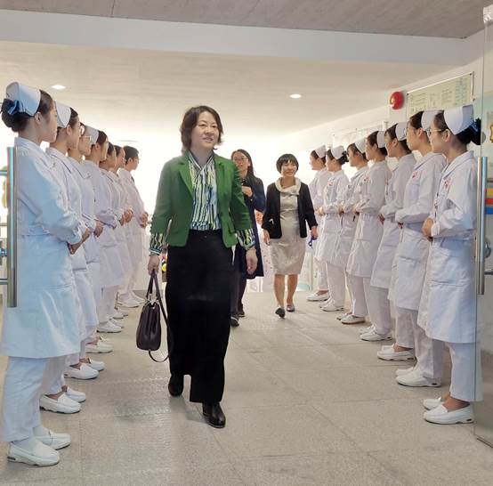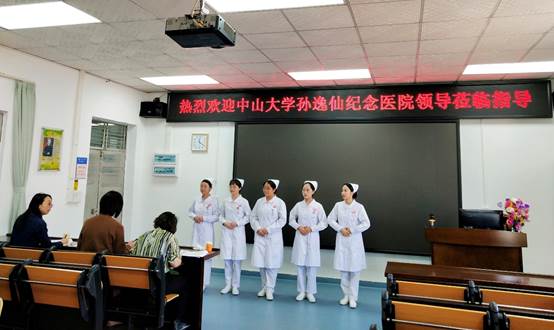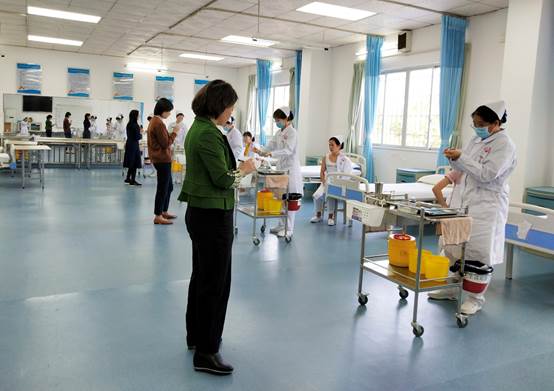 在我院执行院长王秀岚等老师们的陪同下,中山大学孙逸仙纪念医院护理部副主任周雪贞、内科片教学片长袁秋玲老师和外科片教学片长肖琳老师一行三人来到我院护理实验实训中心,同学们列队热情问候,激昂的状态感染了在场每一人。