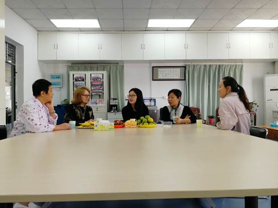 (左起:于凤兰书记、Susan教授、黄芸老师、陈书人主任、陈千副院长)