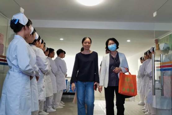 上午8点50分,护理学院王秀岚院长、黄洛莹副院长等热情接待陈利芬副主任等人的到来,衣着整洁、精神饱满的同学们亦热烈欢迎。