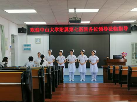 微凉的秋风穿透过和熙的太阳,让人心情惬意了不少。2020年11月6日上午,中山大学附属第七医院(以下简称“中山七院”)吴桂红护长、李娟华老师、骆静芳老师三人前往笃行楼护理实验实训中心面试护理实习生,此次面试的对象为2018级学生,共36人参加面试。