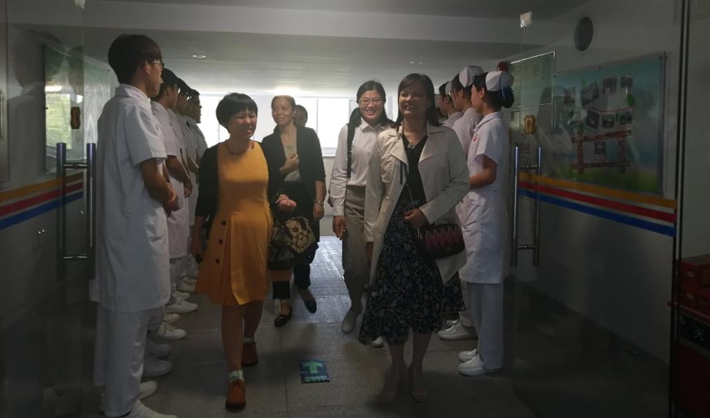 下午3时,来自省医的伍玉琴科长和李惠平老师在护理学院王秀岚院长、黄洛莹副院长的陪同下,走进了笃行楼护理实验实训中心。