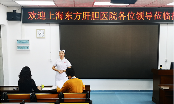 笔试环节期间,我们的党总支书记于凤兰热情地带领肝胆医院的老师们参观了护理实验实训中心,讲述任课老师们日常的授课过程及方式。