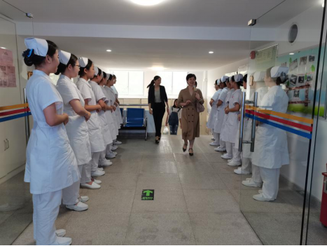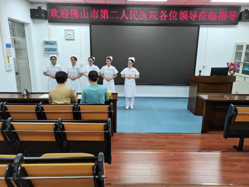 16名参加面试的同学已准备就绪,怀揣着兴奋、紧张、期待的心情,集中在实训中心门前迎接佛山市第二人民医院护理部李燕如副主任和温春良护长的到来。