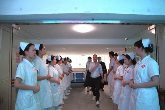 在面试开始前,同学们站成整齐的两排,以饱满的精神状态,充满自信的笑容迎接医院老师们的到来。医院老师们与护理学院王秀岚院长进行交流,并对我校护理学院的教学理念与方式有了进一步的了解。