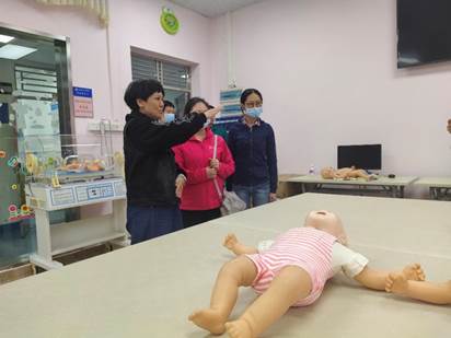 王秀岚院长、黄洛莹副院长和于凤兰书记对三位老师的莅临表示欢迎,并就这次同学们的情况和招聘情况进行了简单的交谈沟通,同时邀请附三岭南的老师们一起参观实验室的环境和设备,展示出同学们平时全面训练且有恒毅的训练精神。