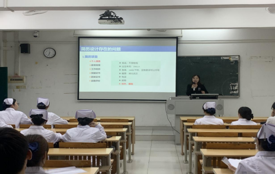 图1 宋秀秀老师向同学们讲解简历中存在的问题
