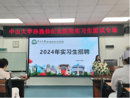 笔试结束后,中山大学孙逸仙纪念医院的老师们向同学们介绍了实习招聘面试的要点,希望同学们能在接下来的环节中大放异彩。接着,面试环节随即展开。同学们每7人一组,通过自我介绍和综合问答等环节,展现大家的专业水平、综合素质以及应变能力。