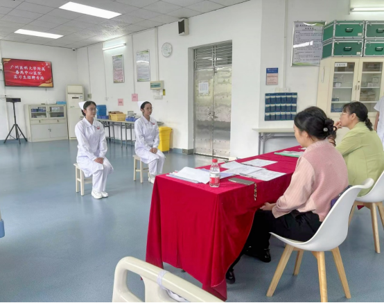 面试在基础护理实验室进行,同学们两人一组,依次进入面试实验室。他们详细介绍了自己的个人爱好、特长以及在校获得的荣誉,并表达了对番禺中心医院的向往。面试过程中,番禺中心医院的老师们根据简历和自我介绍,从多个角度提出了问题,全面考察了同学们的知识水平、实践能力和工作态度。