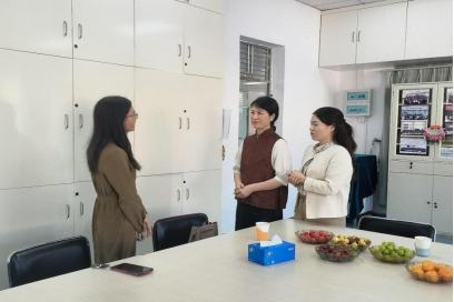 沟通交流后,在黄廷芬老师的陪同下,黄雪琴主任对我院实验室进行参观。与此同时,黄廷芬老师向黄雪琴副主任介绍我院理论与实践充分融合的育人理念,并就我院如何在理论课程、实操训练、日常管理及思想教育等方面融入职业精神的教育和职业素养的培养展开了详细介绍。黄雪琴副主任对我院的理念和做法表示肯定与赞赏。