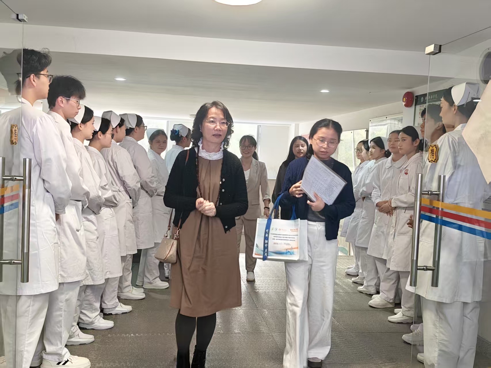 2025年11月6日,身着整齐护士服的同学们神采奕奕,静候广州医科大学附属番禺中心医院(以下简称“番禺中心医院”)实习护士招聘会的启幕。在护理学院黄洛莹副院长和学院老师代表们的陪同下,番禺中心医院刘净老师、黄小琴老师莅临护理实验实训中心。番禺中心医院一行受到护理学院师生们的热烈欢迎。