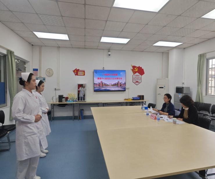 面试前,护理学院王秀岚院长、黄洛莹副院长向医院老师介绍了护理学院学生临床思维培养、理论与实践教学相结合等情况,并介绍了学院的课程设置、实训条件及学生综合情况。番禺中心医院老师们对学院的培养成果给予充分肯定,并结合实习生在医院的表现与学院老师进行了深入交流。