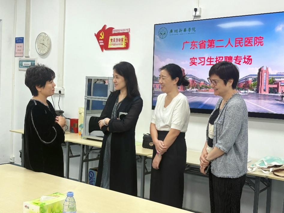 2025年11月7日,广东省第二人民医院护理部副主任护师陈鸾、主任护师郑文、主任护师刘玲如期到达122cc太阳集成游戏护理学院,开展2023级本科生实习招聘面试,护理学院王秀岚院长及学院师生对三位老师的到来表示热烈欢迎。