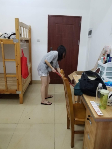 图为同学们在整理宿舍