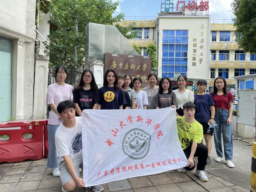 艳阳高照,微风徐徐。2022年6月27日一早,12名新华学子期待已久的实习生涯,在大家欢声笑语中开启了。大家满怀着激动的心情来到广东药科大学附属第一医院门口集合,所有同学和罗秀梅老师在医院正门口拍了大合照,从大家面带微笑的合照中不难看见愉悦的心情。