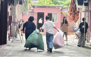 图2 师生共同搬运行李