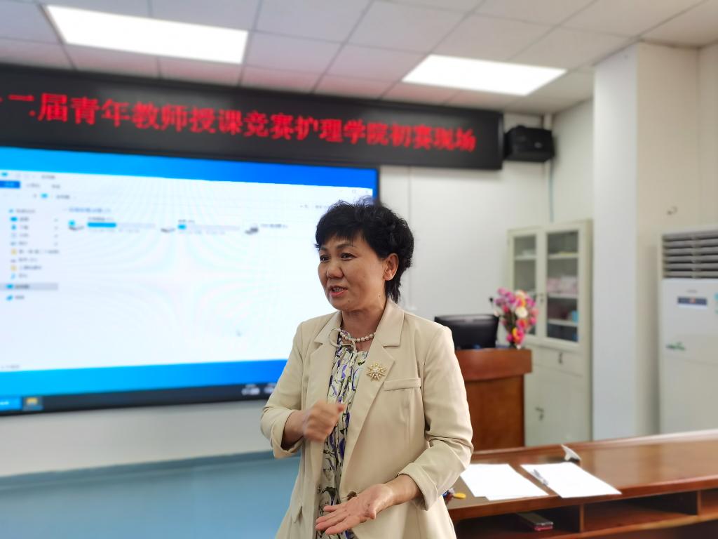 2023年4月28日中午12点,122cc太阳集成游戏第十二届中青年教师授课竞赛院内选拔赛在护理实验实训中心顺利举办,王秀岚院长、黄洛莹副院长以及张建林教授、贾长宽教授、李君教授、龙建教授、李华主任护师、武钢副教授、罗秀梅副教授、麦剑荣副教授受邀出席担任此次选拔赛评委,学院全体教职工出席观摩选拔赛。本次院内选拔赛参赛教师分别有汪丹、曹小兰、范中意、蒋思思、李华金共计五位教师。本次选拔赛由办公室主任周玲主持。