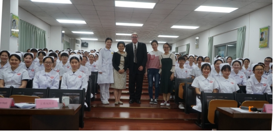 另外,Craig D. Thatcher教授为各位同学展示了美国亚利桑那州立大学护理与健康创新学院的校区建设和发展情况,并进一步介绍了护理本科、硕士、博士的培养模式,并且就师生的问题作答。Craig D. Thatcher教授介绍结束之后,同学们对于学制、学费以及该院的网络课程可及性等问题向Craig D. Thatcher教授进行了咨询,并得到了Craig D. Thatcher教授的详细解答,同时王院长也对网络课程的证书效力和“4+1+2”的培养模式等问题做了进一步的补充说明。