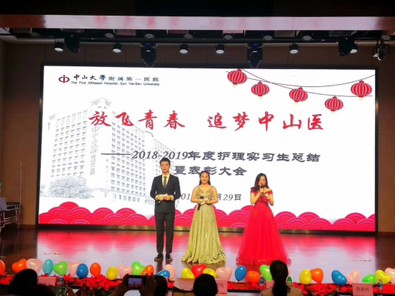 2019年3月29日下午,中山大学附属第一医院(以下简称中大附一)在中山一院1号楼17楼时代国际会议中心举行了2018年度护理实习生年度总结暨毕业汇演大会。医院护理部陈利芬主任、柯彩霞老师、外科片长罗凝香老师、内科片长张楠老师、临床各科室护长和带教老师、各校指导老师以及全体护理实习生共350余人参加此次大会。我院执行院长王秀岚教授、实习指导老师郭运芳老师受邀出席本次大会。