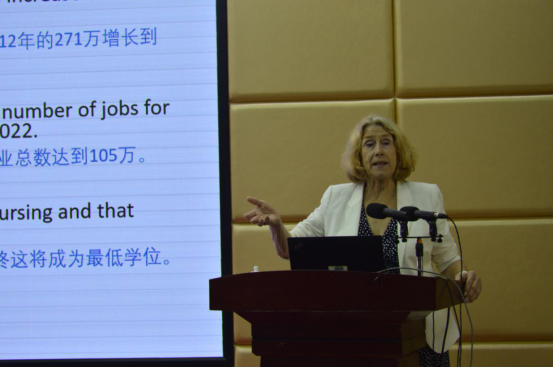她从护理人力,护理人员的变化,医疗法案的推进,人口变化,当前医疗行业的趋势及影响因素和所面临的问题展开讲座,她提出,新兴全球化护理人员需要共同的标准以推进护理与医疗全球化。