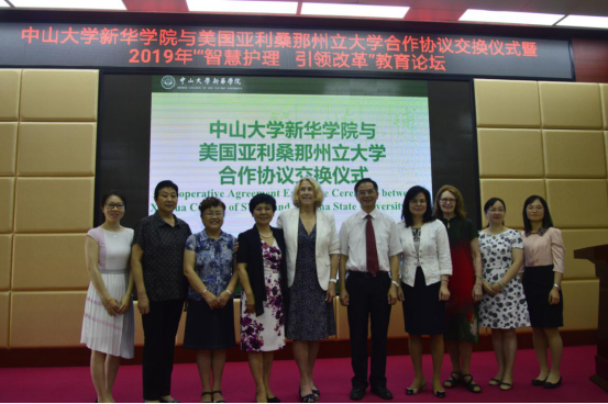 2019年6月22日,中山大学新华学院(以下简称我校)与美国亚利桑那州立大学(以下简称ASU)合作协议交换仪式暨2019年“智慧护理 引领改革”教育论坛在广州校区成功举办。