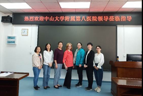(从左到右依次为:巫碧梅老师、黄洛莹主任、于凤兰书记、Susan教授、方向红副主任、赵洁护士长、邓钥琼老师)