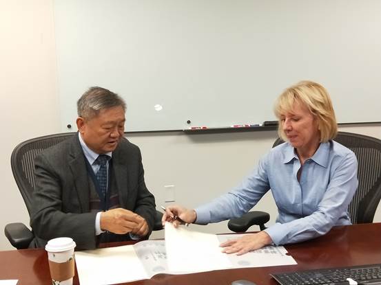 图五:我校与ASU签署框架合作协议(左:王庭槐,右:Stephanie Lindquist)