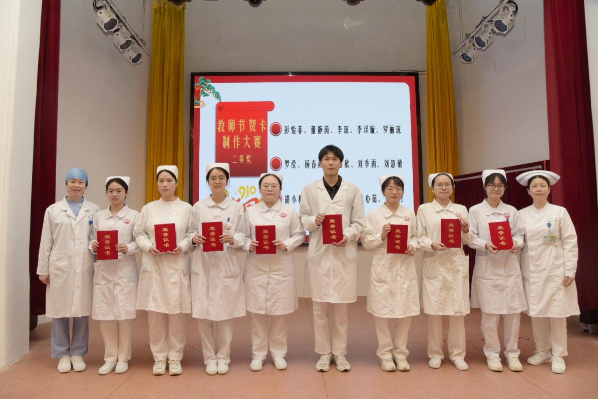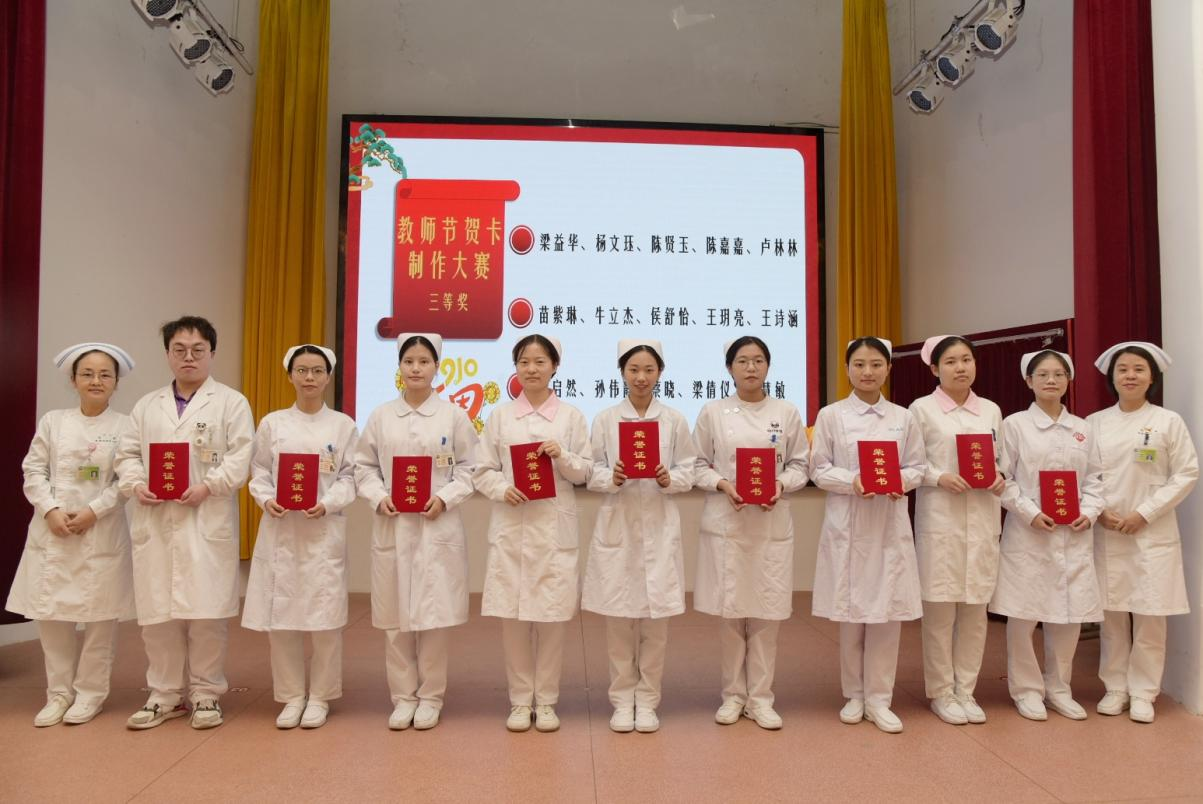 接下来是颁发2022-2023年度优秀实习生、2022年教师节贺卡制作大赛、第九届实习生操作技能大赛等奖项。其中,我院周婷婷、黄颖彤、李可梦、高溟璐、许秋梅、罗滢、彭怡菲同学荣获优秀实习生荣誉称号。