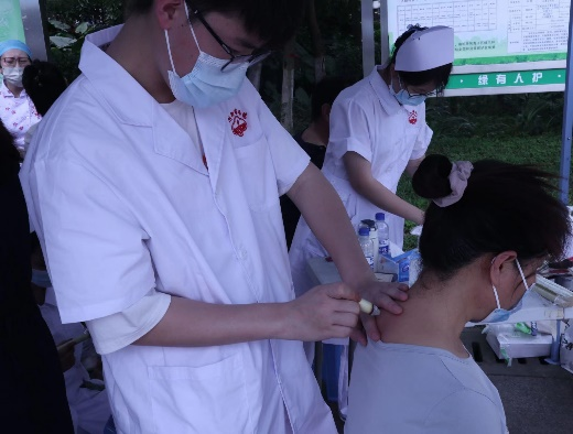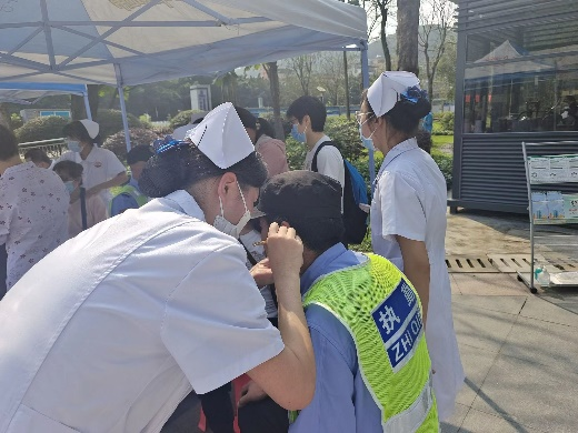 在教工党支部、学生党支部以及护梦队各位志愿者的共同努力下,今天上午火炉山健康服务活动圆满结束,结合自身专业特长,我们为附近居民提供中医护理,测量血压、血糖,常规体检,营养膳食宣教,婴幼儿照护等与百姓生活息息相关的服务,专家、老师也耐心地为前来咨询的居民答疑解惑,获得了现场群众的广泛认可和赞誉。作为护理学院的学生,我愿尽吾所能,用吾所学,佑吾所及,服务百姓,关爱大众。