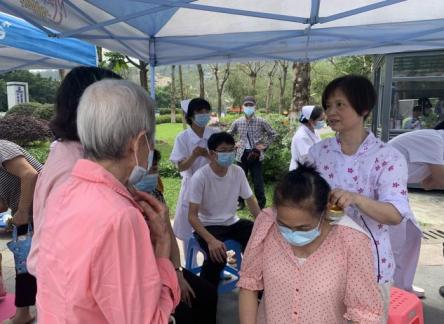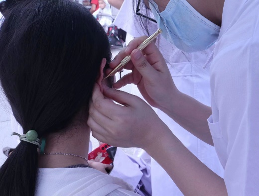 志愿者为居民进行耳穴压豆