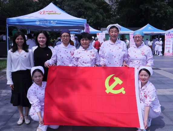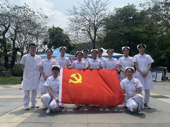 122cc太阳集成游戏护理学院教工党支部、护梦队、学生党支部活动合影留念