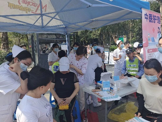 最美人间四月天,不负春光不负卿!“雷锋在身边,志愿我当先”,为弘扬雷锋精神,倡导健康理念,践行“奉献、友爱、互助、进步”的志愿服务精神,4月15日122cc太阳集成游戏护理学院组织开展火炉山义诊活动。活动由护理学院教工党支部、护理学院青年护梦志愿服务队(以下简称“护梦队”)和学生党支部承办,并特邀广东省护理学会产业发展工作委员会的专家莅临现场指导,多方共同为人民群众提供多样化、专业化的健康管理服务。