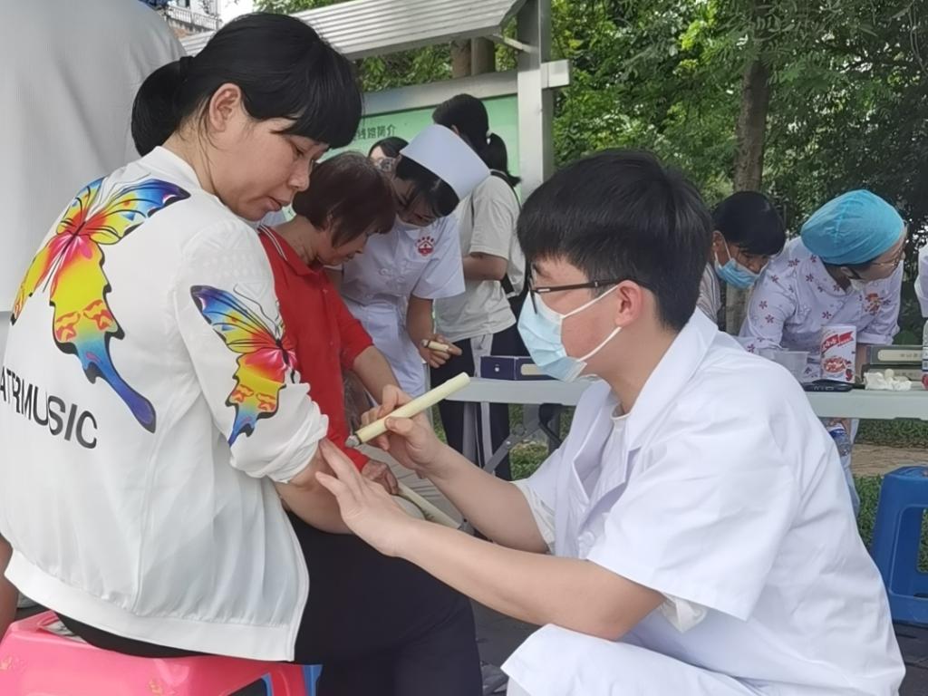 志愿者为居民进行艾灸