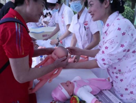 志愿者在进行婴幼儿护理知识的讲解