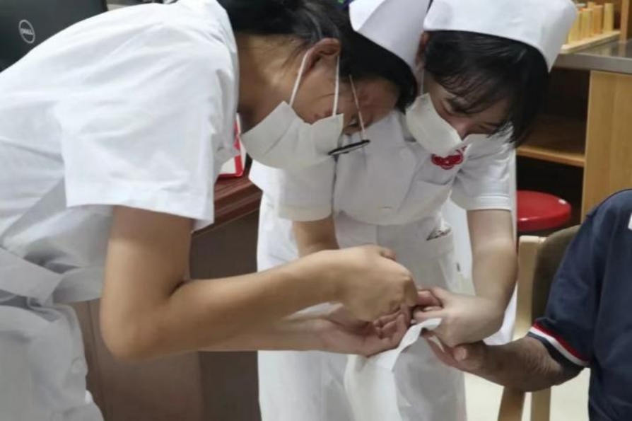 本次养老院健康服务活动主要包括中医护理、血压血糖测量和日常起居护理三类项目。师生志愿者运用自己所学的中医护理知识,为老人进行推拿按摩、耳穴压豆和艾灸等,在袅袅升起的艾烟和一推一按之间舒缓了老人筋骨间的疲惫与酸痛。志愿者为老人们提供了血压、血糖测量服务,并耐心地为老人们讲解高血压等常见疾病预防知识与注意事项,提醒老人健康饮食,合理作息。面对行动不便的老人,志愿者为他们进行了头部和皮肤的护理,细心帮他们擦拭身体和修剪指甲。此外,志愿者还结合老人们的年龄特征,以通俗易懂的方式针对性地为老人们讲解了营养膳食、肌肉锻炼等方面的注意事项,提升老人们的健康意识。