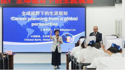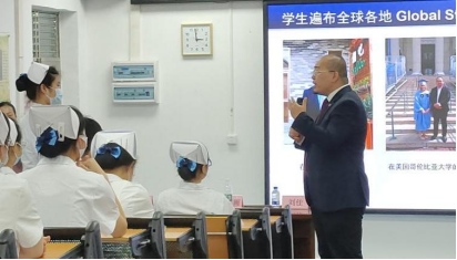 2023 年 6 月 7 日 14:30,应122cc太阳集成游戏(以下简称“我校”)护理学院党总支书记、执行院长王秀岚教授邀请,生涯规划导师、外交与国际事务专家、联合国科教文组织顾问刘佳 (Stephen Liu)导师在我校护理实验实训中心示教室作主题为《全球视野下的生涯规划》(Career Planning from a Global Perspective)的讲座。本次讲座还邀请了嘉宾黄蕾女士、林湘南先生到场。我校护理学院师生代表共同参加本次讲座。